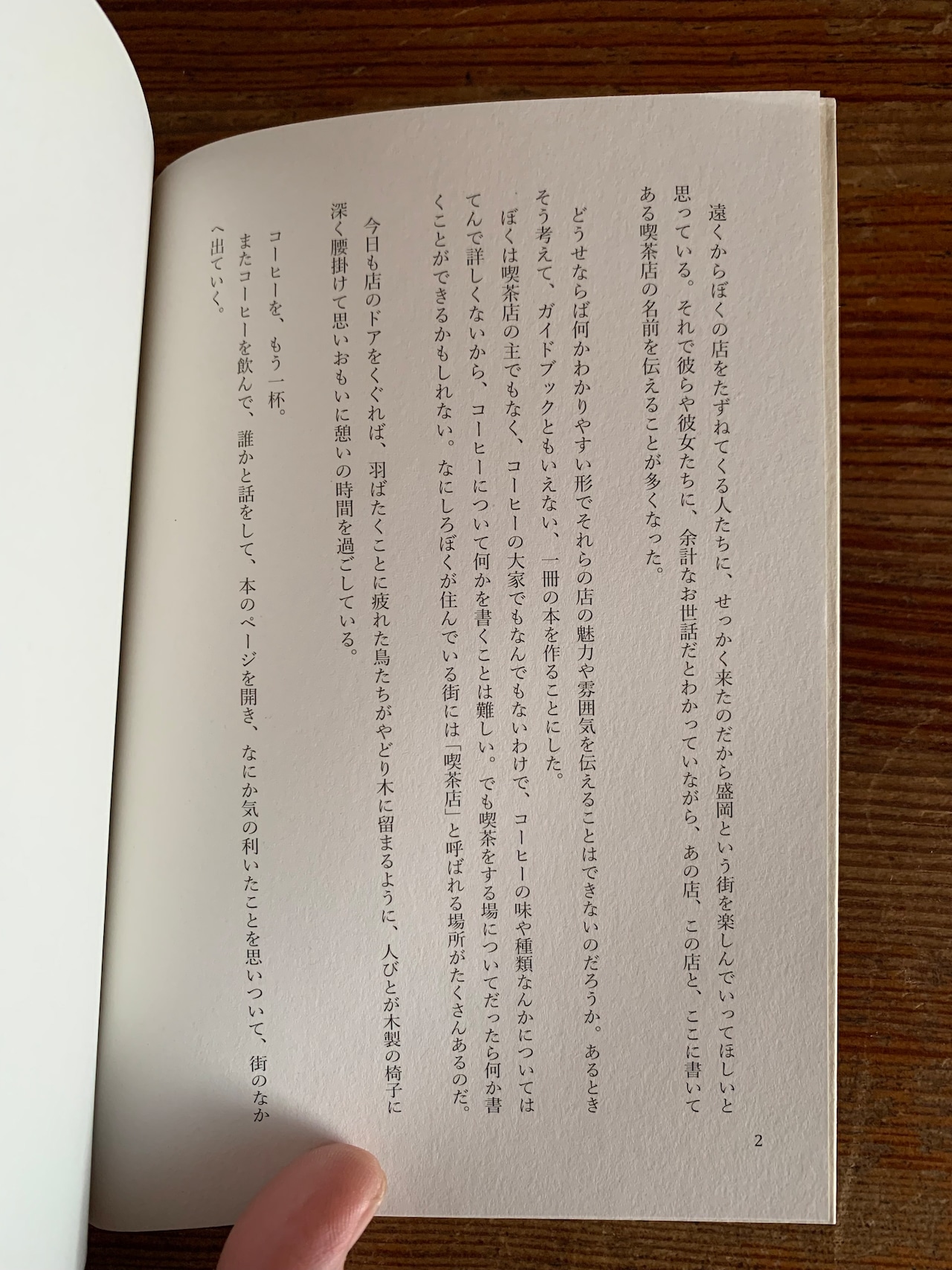 お気に入りの喫茶店7店舗プラスαにまつわるエッセイ、巻末企画「WHAT ARE YOU DOING THIS WEEKEND AT MORIOKA?」、コーヒーブレイクに聴くべきレコードガイド「COFFEE BREAK:28HOURS」も併載。