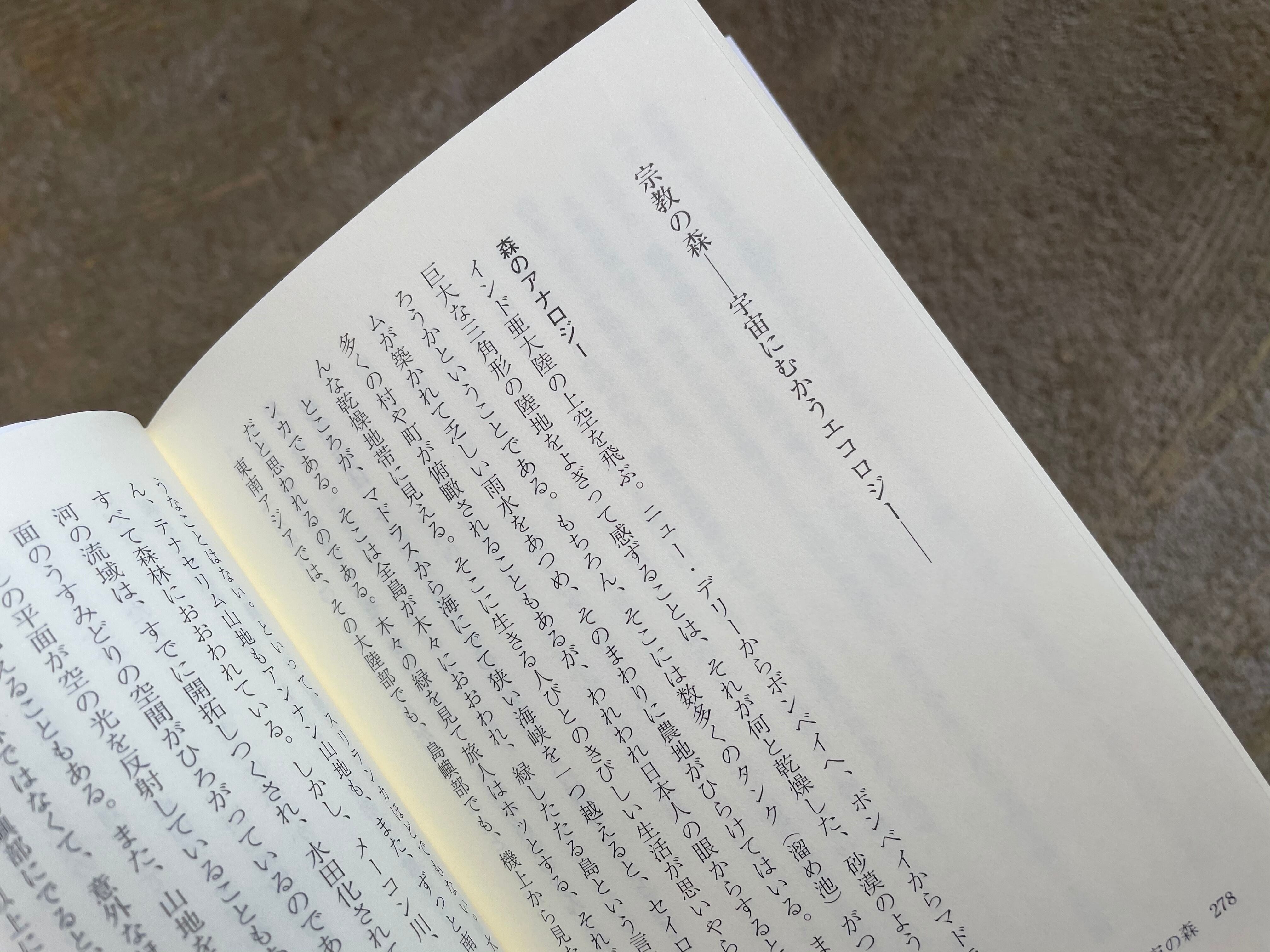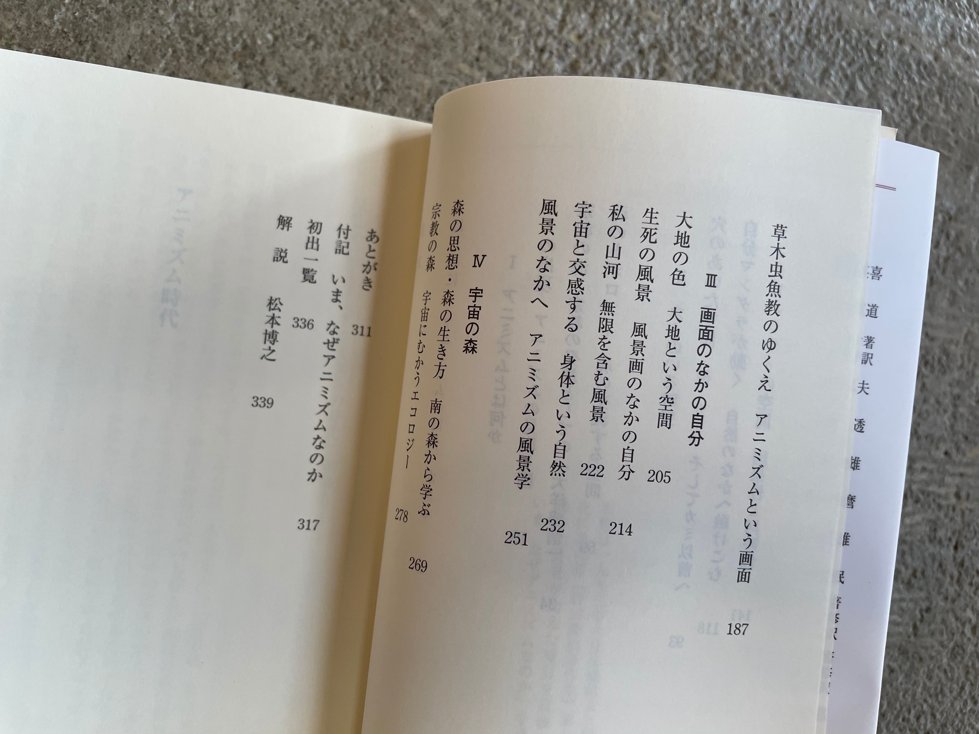 さて、これから述べようとすることは今日のアニミズムである。それは私のアニミズムであるとともに、皆さま一人ひとりのアニムズムでなければならない。ホントのことをいうと、木のアニミズム、鳥のアニミズムというふうに、森羅万象がそれぞれの世界の主人公になって自分を語りだし、また、たがいにそれを聞くことのできる時が来るのを待っているのである。