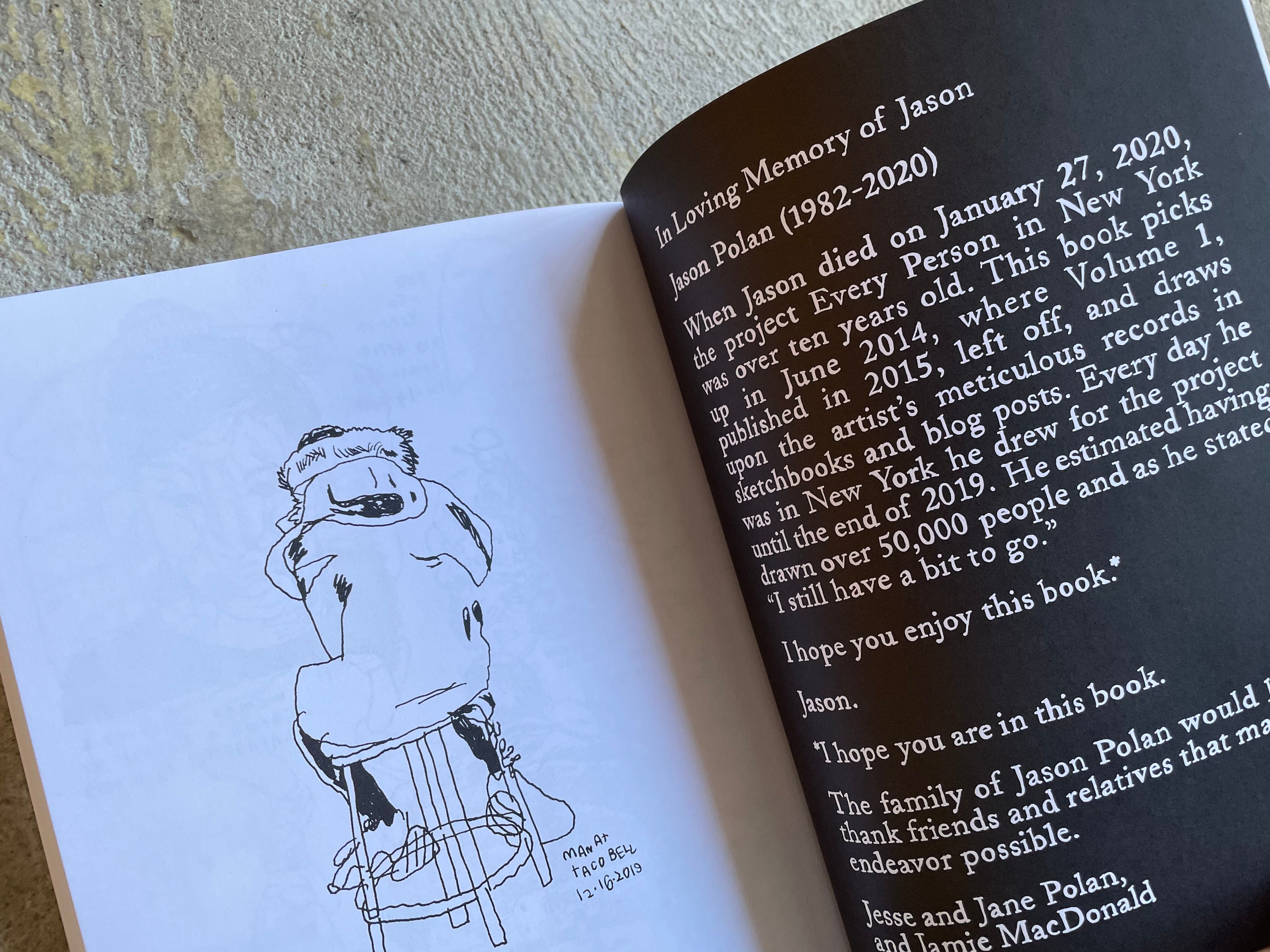 アメリカ人アーティスト、ジェイソン・ポラン(Jason Polan)の作品集。2020年1月27日に亡くなるまで10年以上継続してきたプロジェクト『Every Person in New York』。