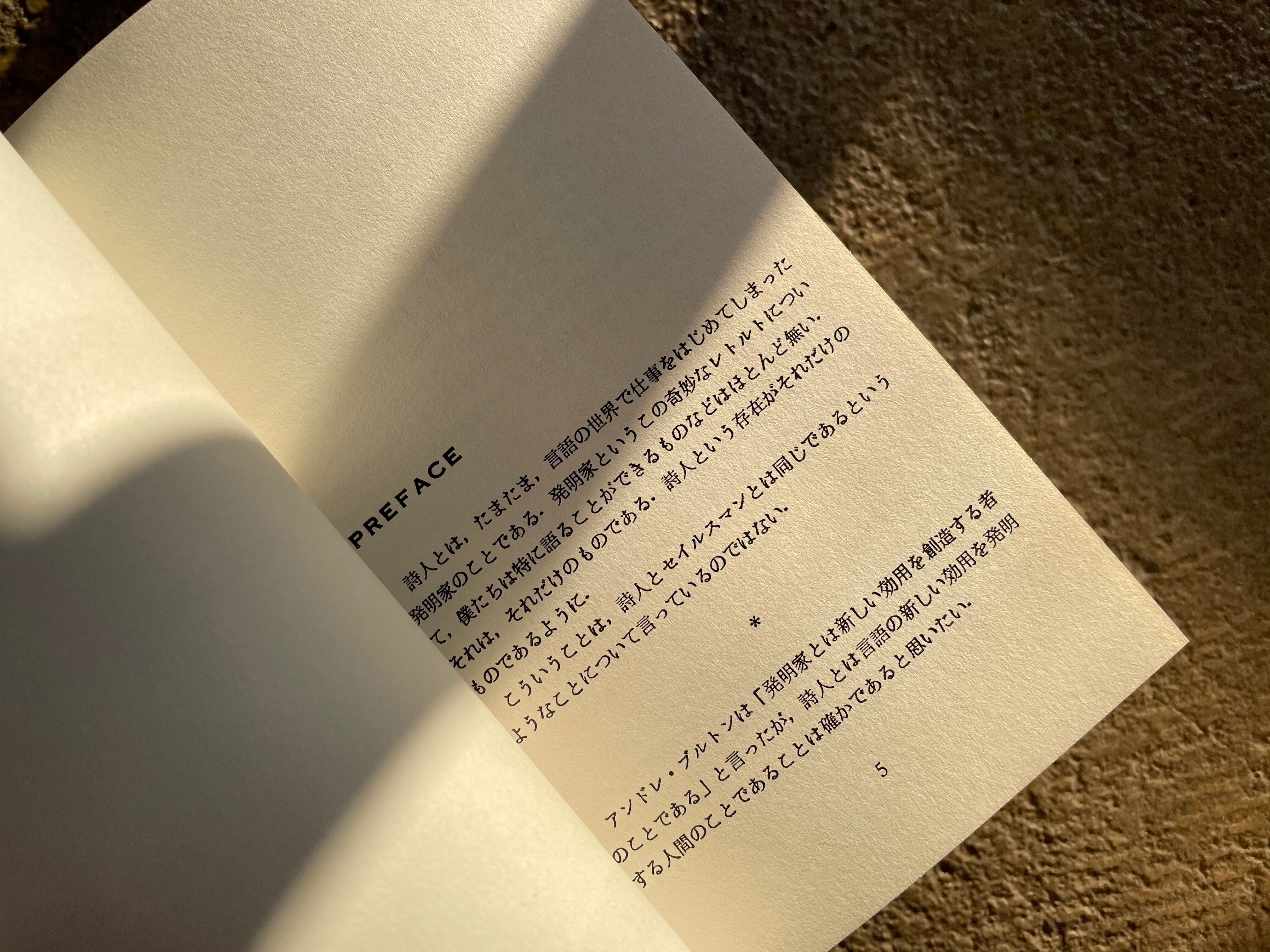 北園序文「PREFACE」詩人とはたまたま言語の世界で仕事をはじめてしまった発明家・・・も収録。