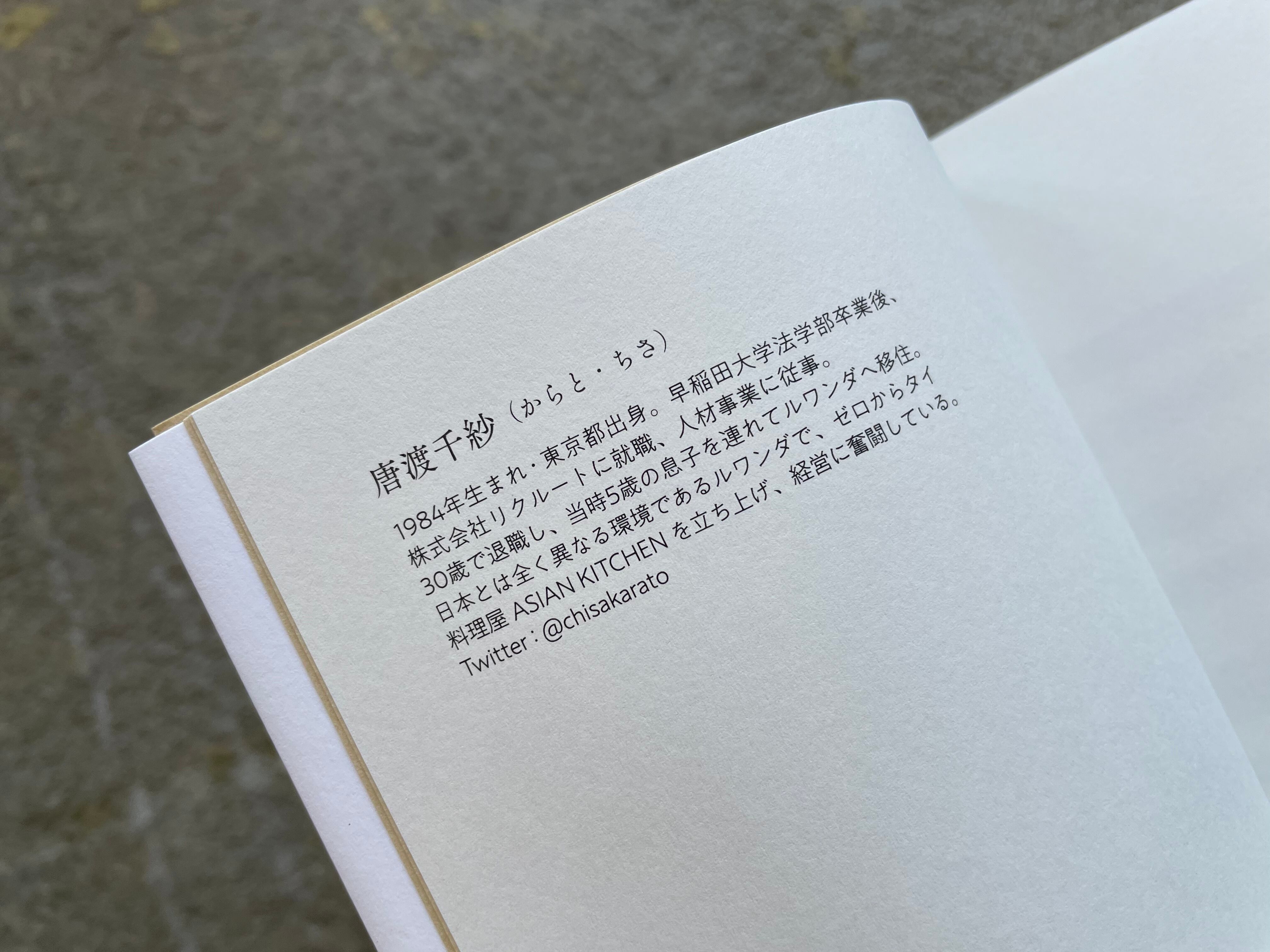 1984年生まれ・東京都出身。早稲田大学法学部卒業後、株式会社リクルートに就職、人材事業に従事。30歳で退職し、当時5歳の息子を連れてルワンダへ移住。