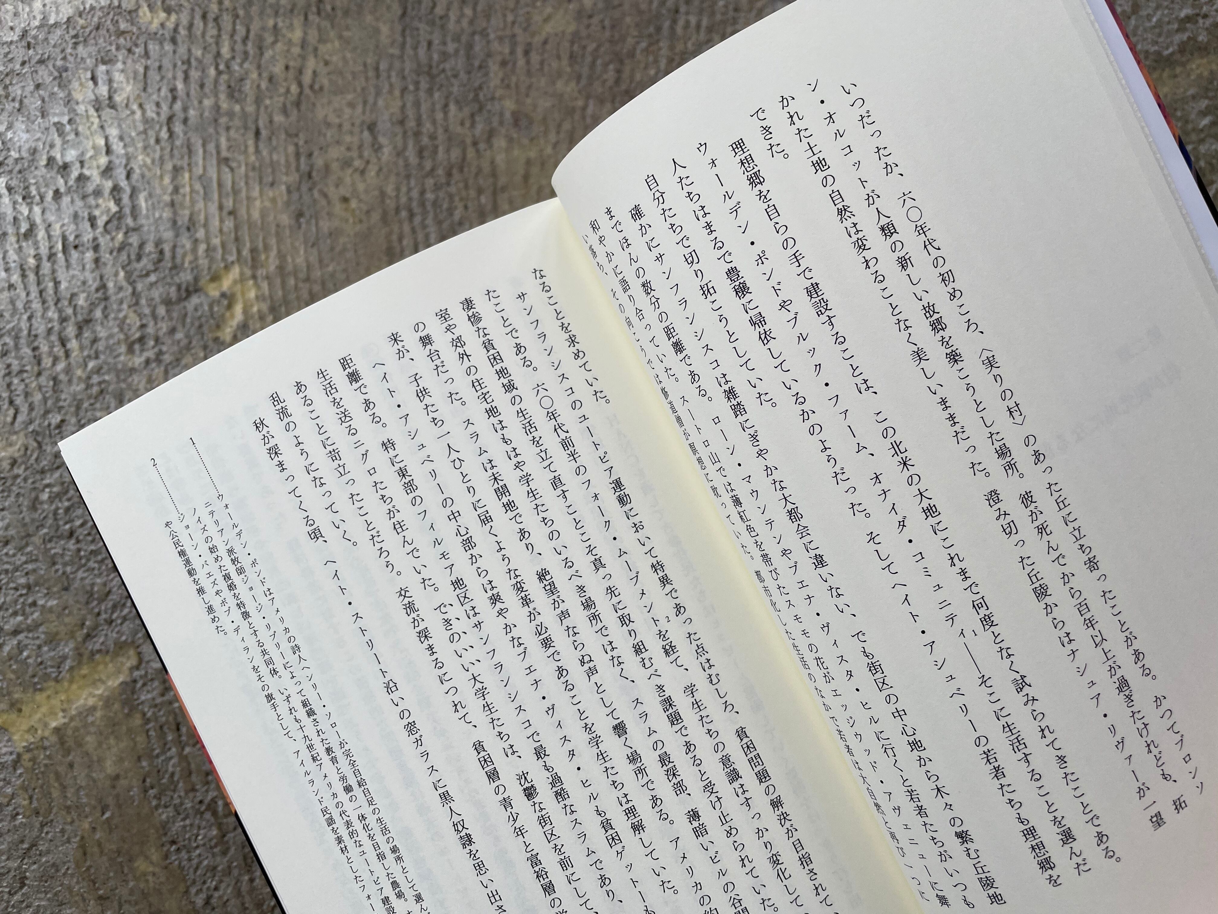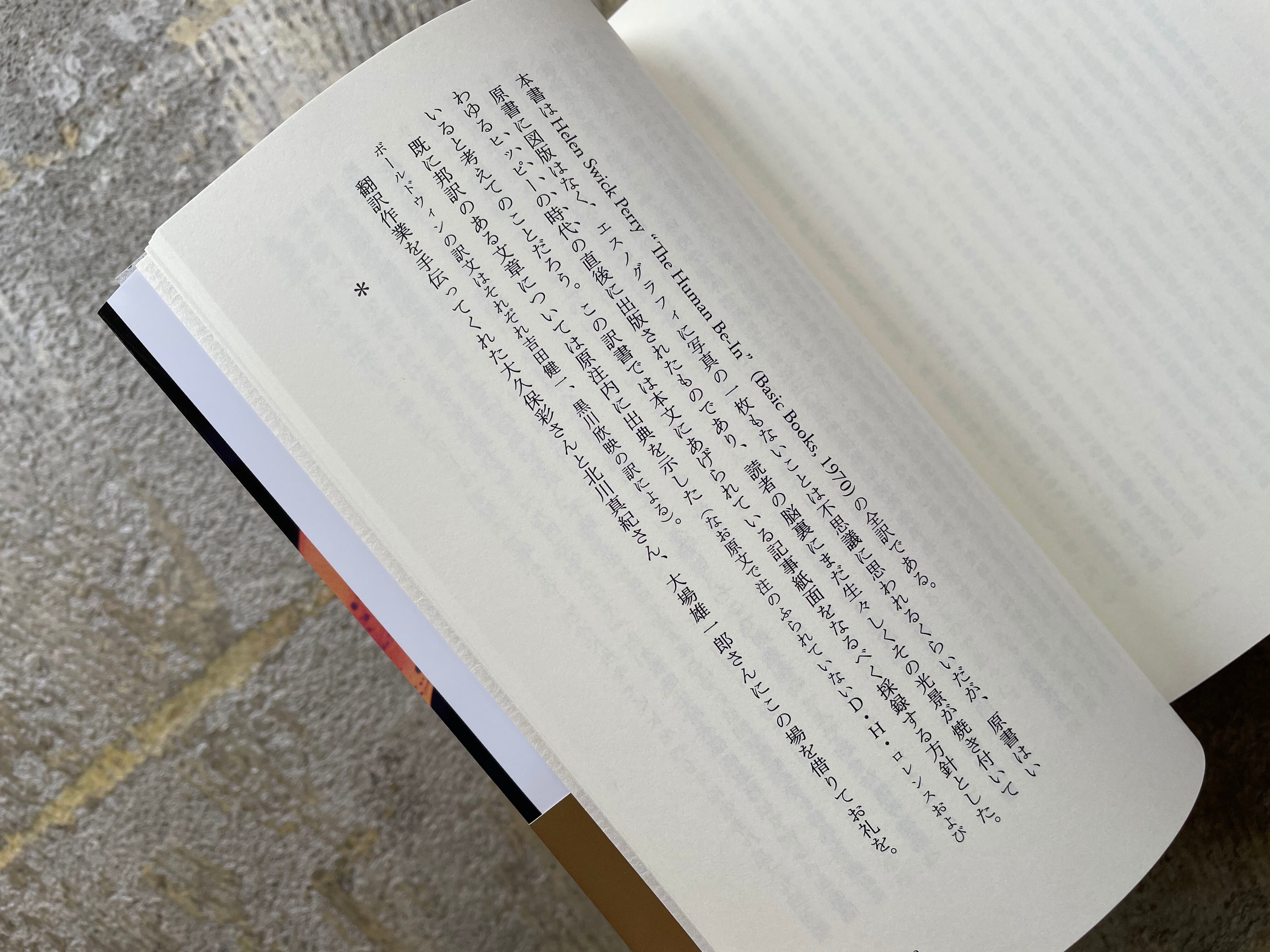「六七年初頭のヘイト・アシュベリーには博士号取得者もいたし中退者もいた。菜食主義者もいれば肉食者もいた。LSDに耽る若者もいれば、それを毛嫌いする者もいた。肌の色や宗教にかかわらず大量の人間が寄り集まっていた。肩を寄せ合って生活する、まるで集落生活だった。既存の価値観が塗り潰したものを新しく掬い上げようとしていた。六〇年代、世界中でこのムーブメントが動き始めていた。鬨の声を今でも私たちは若者たちの歌のなかに聴き取ることができる」――本文より