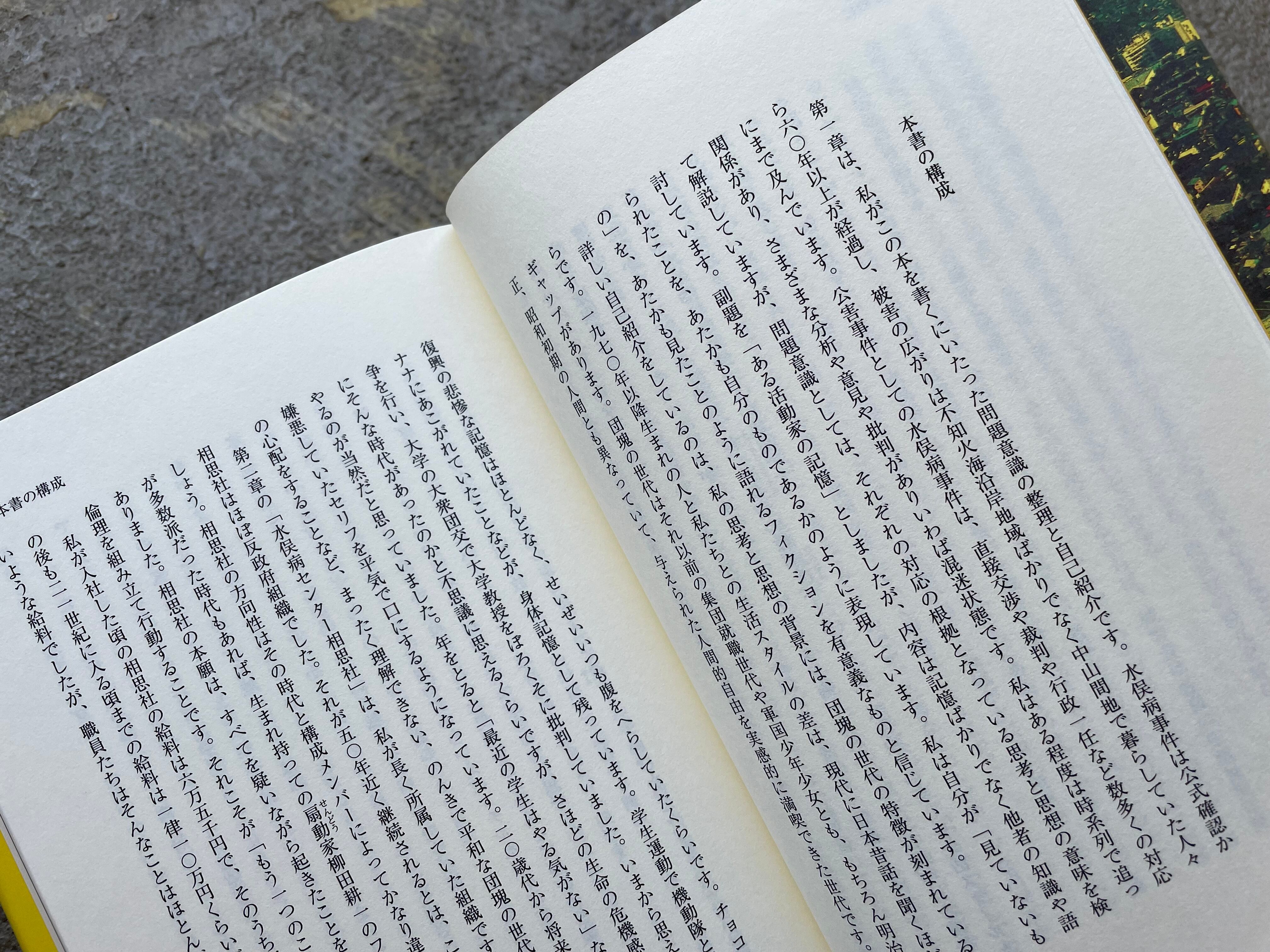 「できる限り感情を排して事実に即して述べます……ただ事実と意見と主観的解釈を織り交ぜた物語を構成して、読者の誤読を意図的に導く方法は極力排します。水俣病事件の事実を拾い集めてそれを自分自身に照らし合せて、従来の水俣病事件に関わる見識を一つひとつ洗い直します」と著者がいうとおり、その立場からの見方は極力排されている。たまたま水俣にたどり着いた「通りすがりの旅行者」としての著者の目には、「未曽有の大事件」が曇りなく歪みなく映し出される。水俣病事件の「過ち」は過去の出来事ではなく、現代日本の陰画(ネガ)でもある。