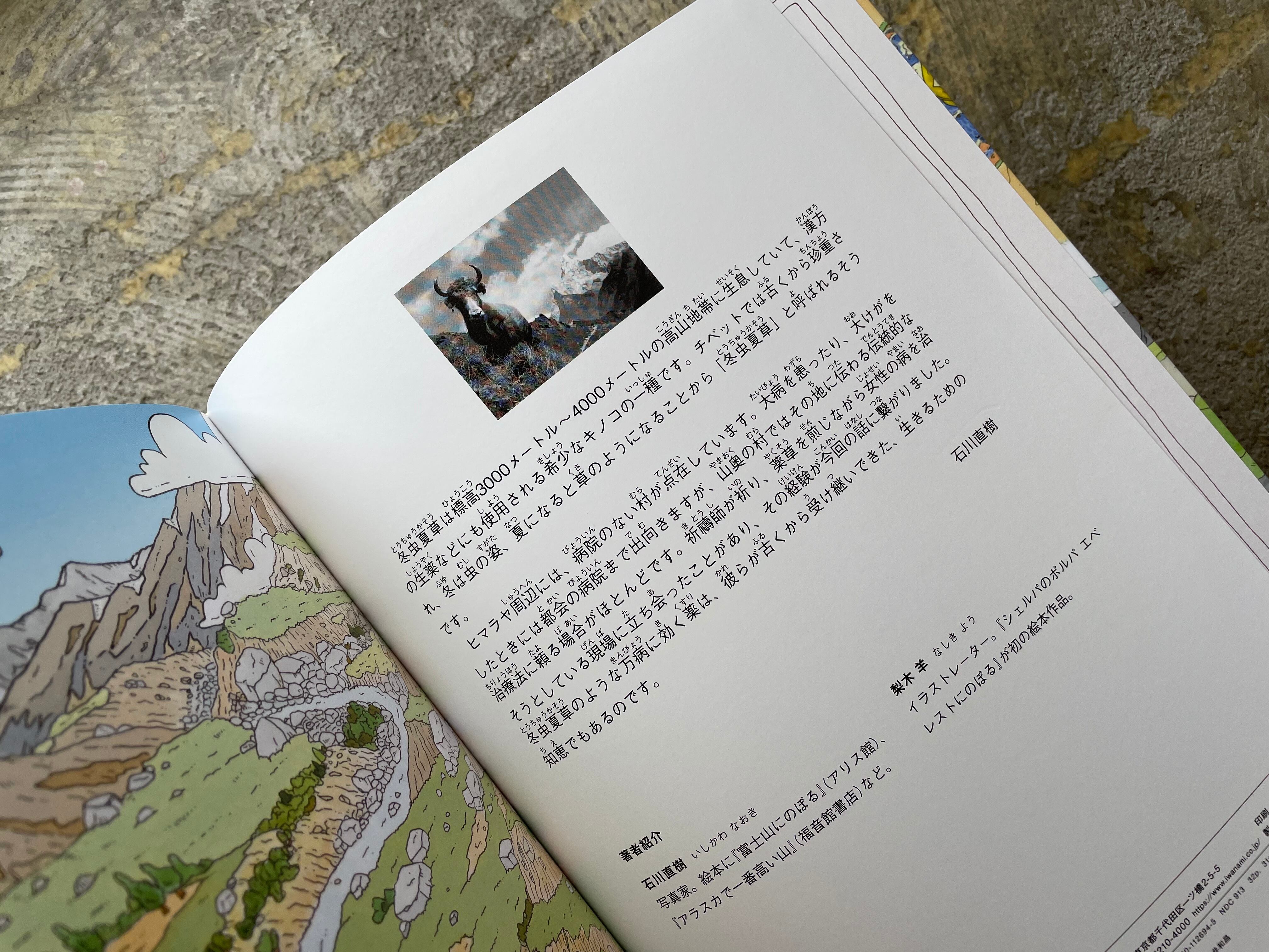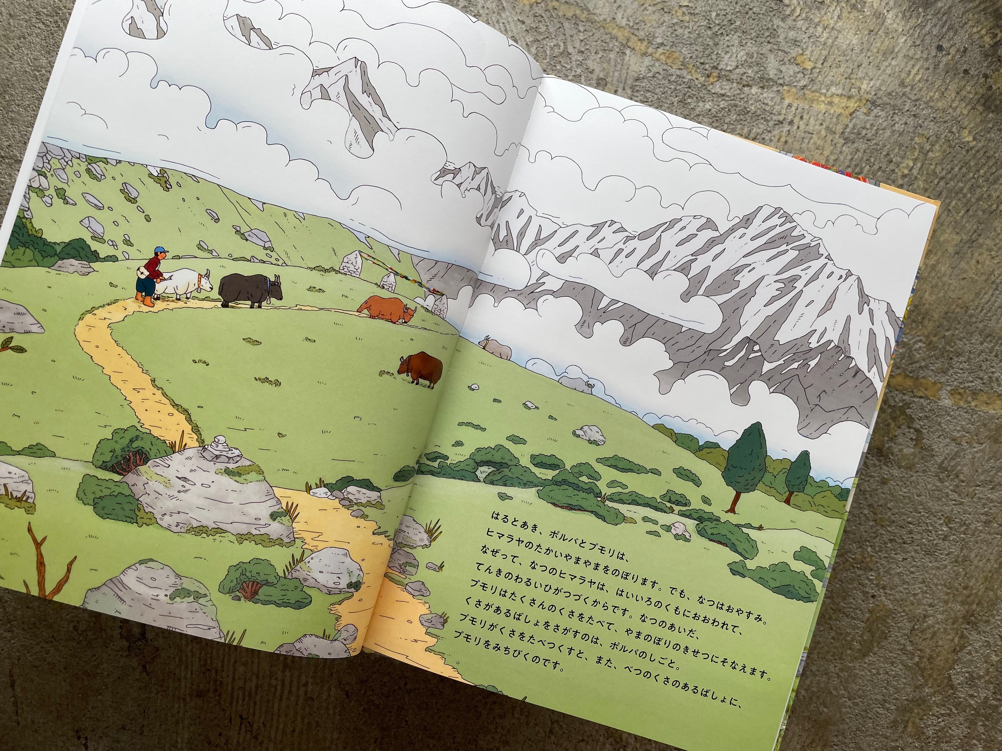 ヒマラヤのシェルパの人びとにとって、ヤクは大切な生きもの。シェルパの男の子、ポルパは赤ちゃんの頃から、白いヤクのプモリと一緒に育ちました。ある日、具合がわるくなったおばあちゃんのために、ポルパはプモリとふしぎな薬草を探す旅に出ます。それは「むしのような、くさのような、きのような」形をしていて……。