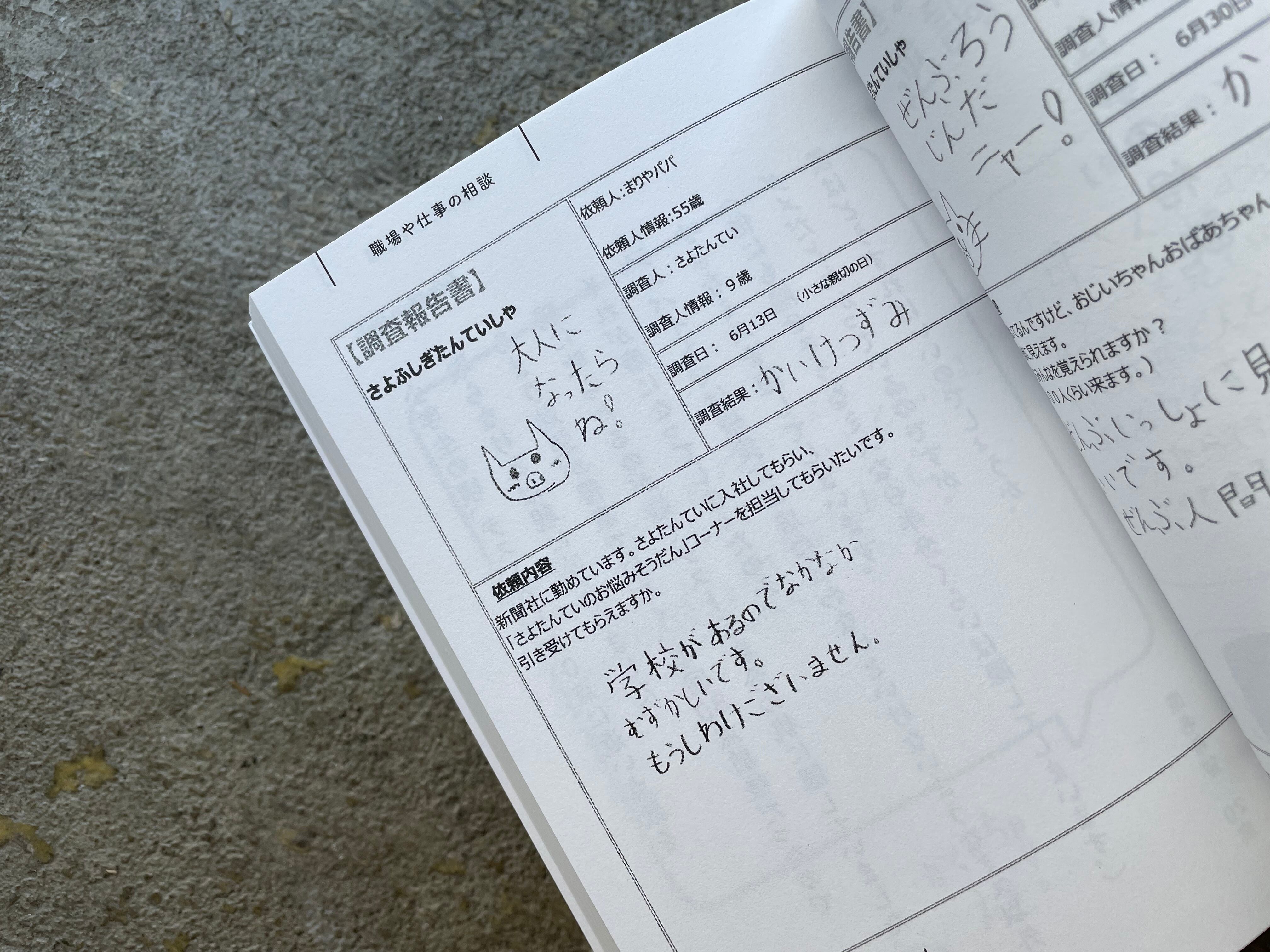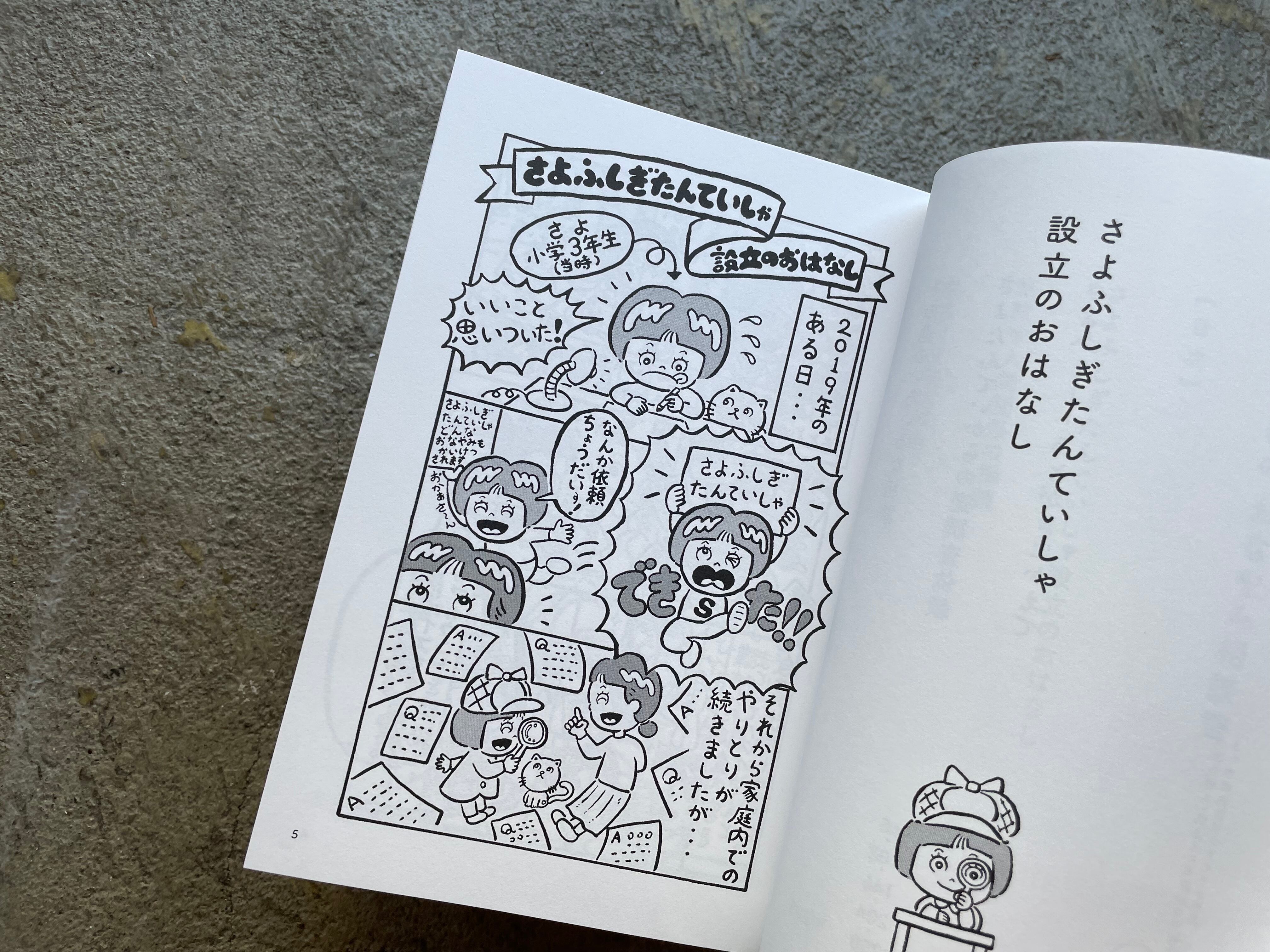 約2年前に母親との遊びの中で「さよふしぎたんていしゃ」を設立。さまざまな人たちの調査依頼(お悩み)を解決。調査報告を載せたインスタグラムのアカウントはフォロワー4万人以上。それらをまとめた自費出版本「こんにちは! さよふしぎたんていしゃです! 」が大きな話題になった。