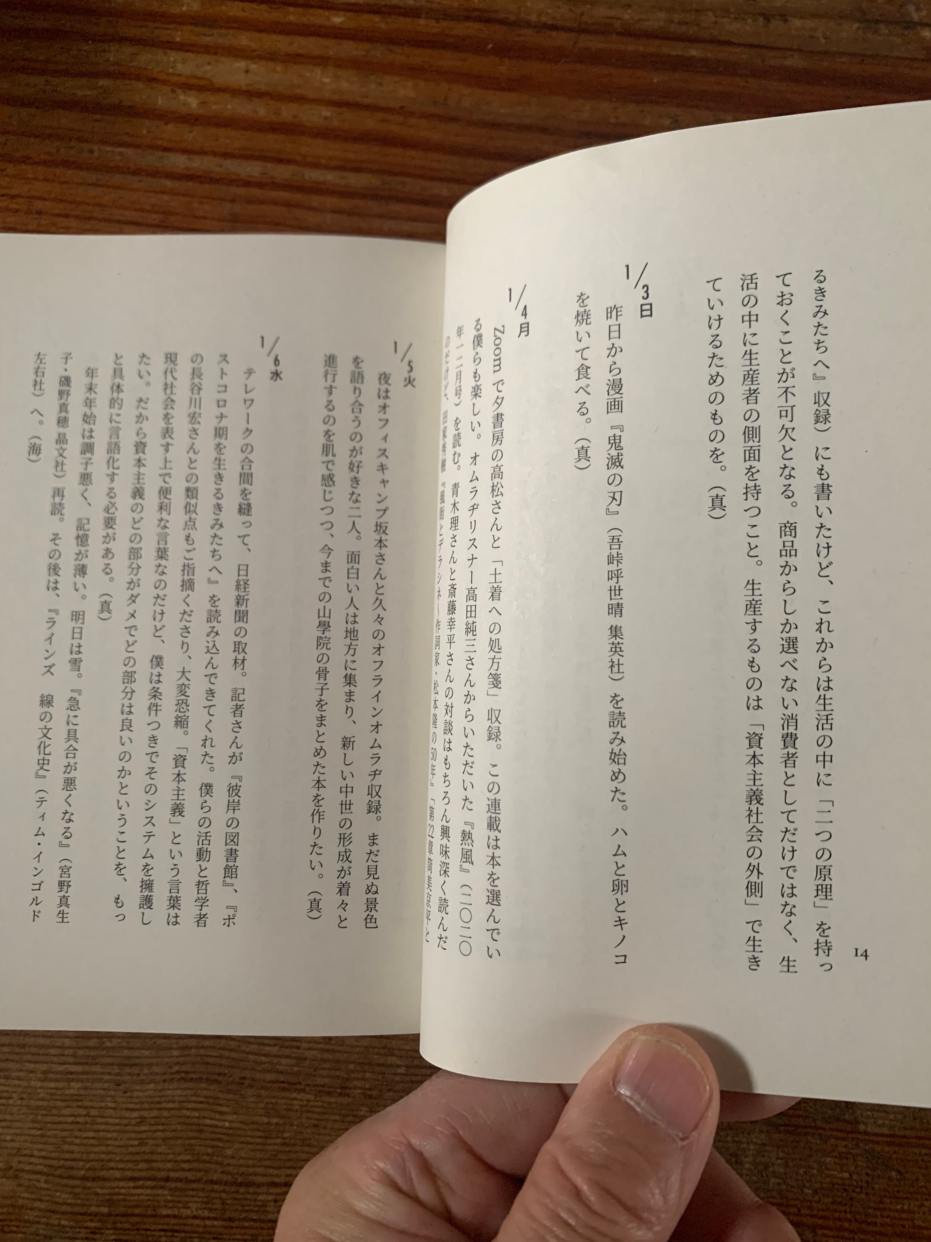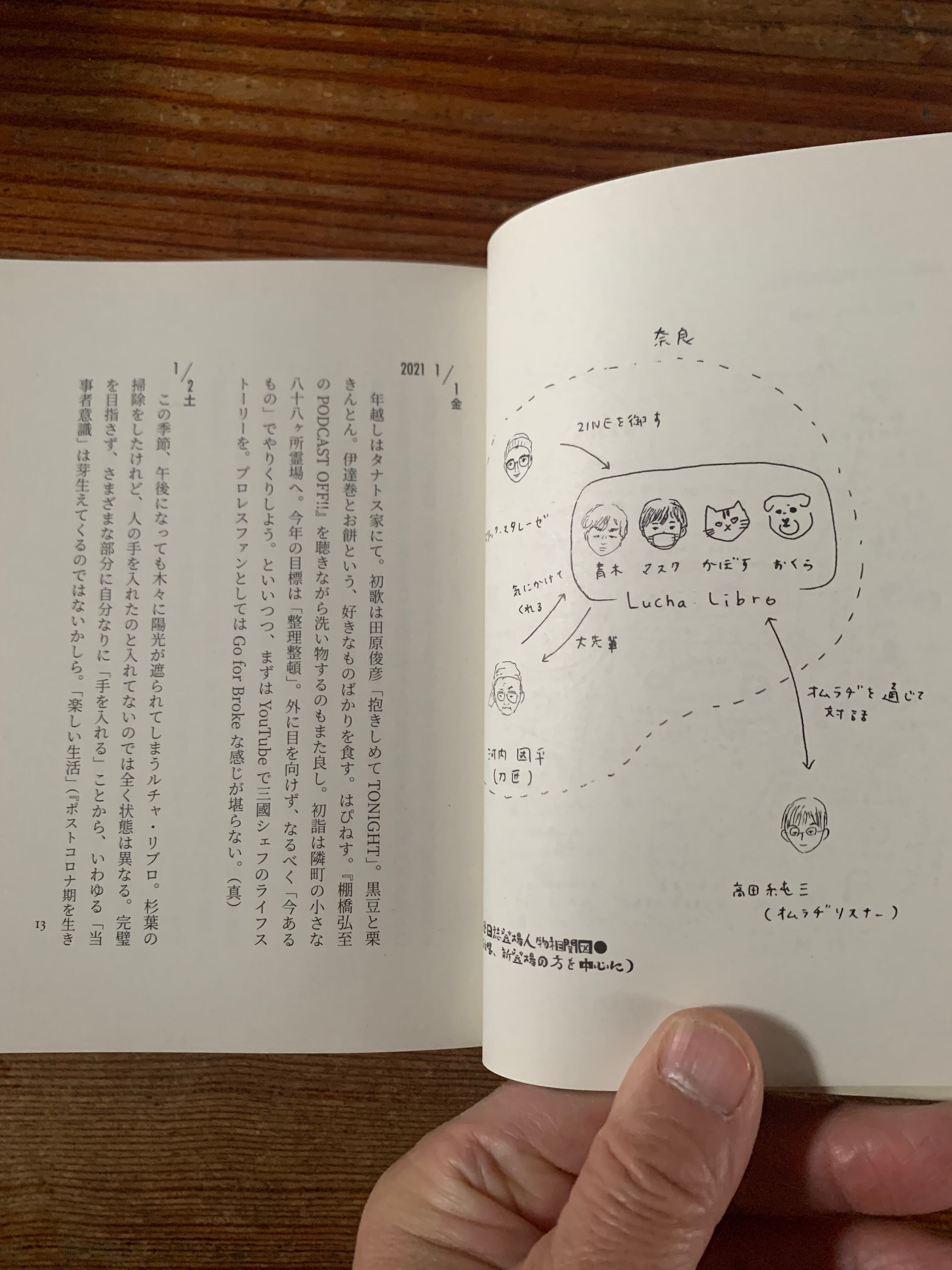 奈良県東吉野村。人口一七〇〇人の村の山あいに佇む一軒家、人文系私設図書館「ルチャ・リブロ」。自宅を開放して図書館を運営する夫婦が、仕事に、生活に、山村と街を、あるいは彼岸と此岸を往復しながら綴った日記に、エッセイや草稿「研究ノオト」を収録した、日記帳。資本主義と権力、人権や経済、そして自身の体調のこと。自粛やオンライン会議が日常化していく中で考えた、二〇二一年の記録。